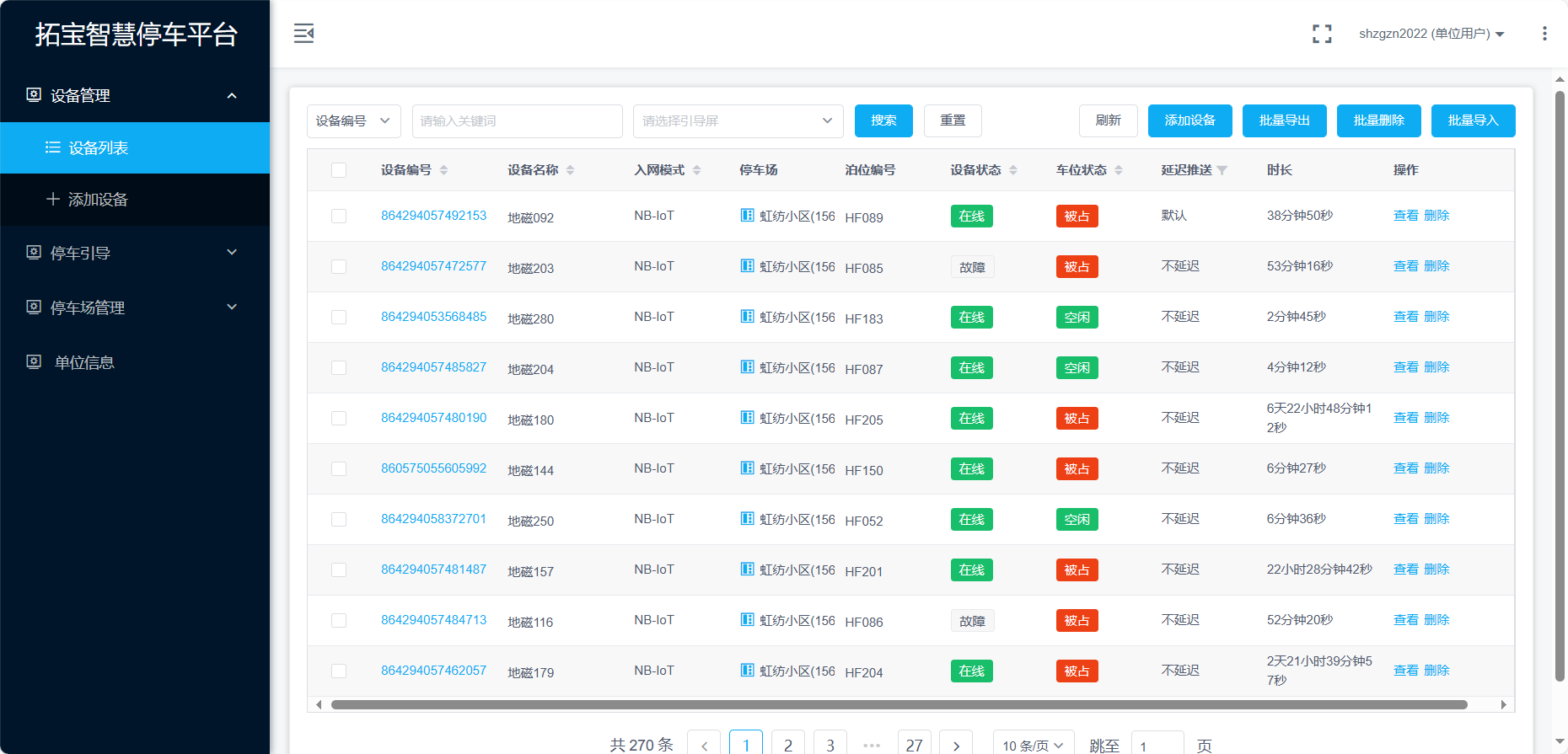 TPI 园区停车引导平台为头号玩家官网物联网平台体系重要组成部分,综合运用了“物联网+云计算+大数据”等新一代信息技术,通过对停车位安装地磁车位检测器,建立一体化的停车后台管理系统,实时进行停车数据采集、报送,从而实现区域停车资源智能化管理,通过电子引导屏显示车位资源,快速引导车辆合理停放,提高停车泊位的利用率和周转率。